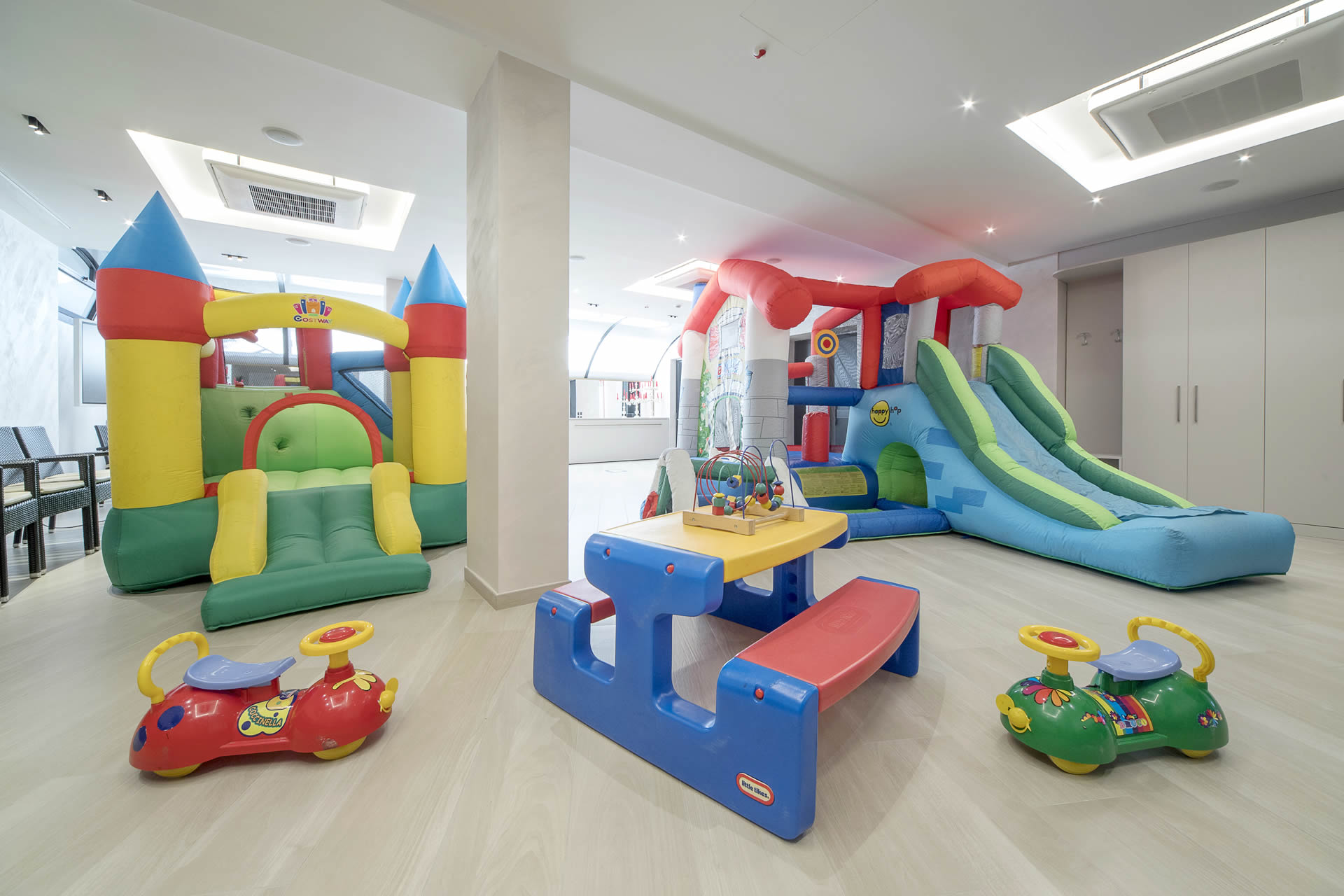 Younger children can play freely in the Baby Club, surrounded by soft toys, Little Tikes playhouses and safe games. Older kids can challenge friends at table football or enjoy video games in the games room.