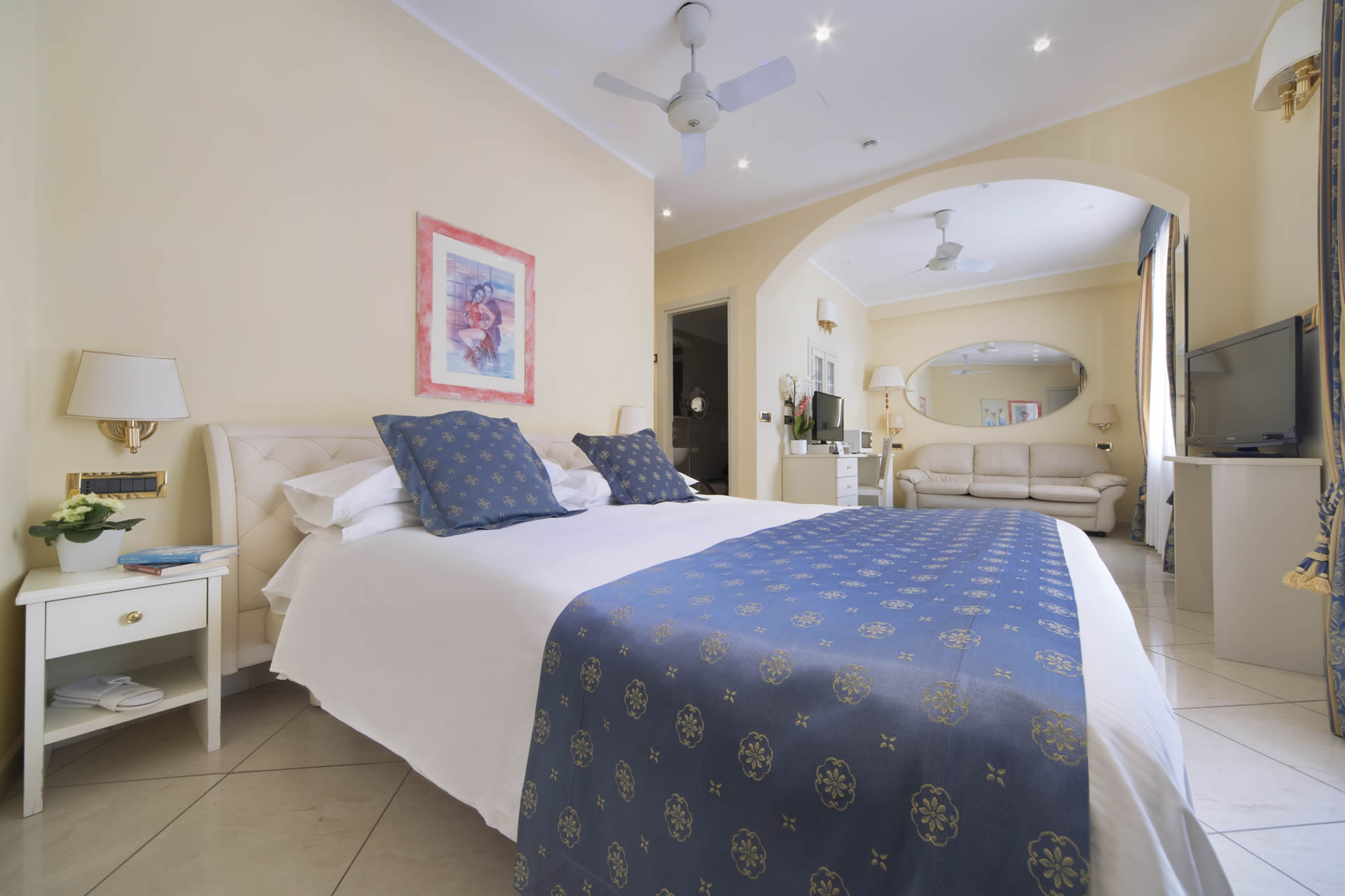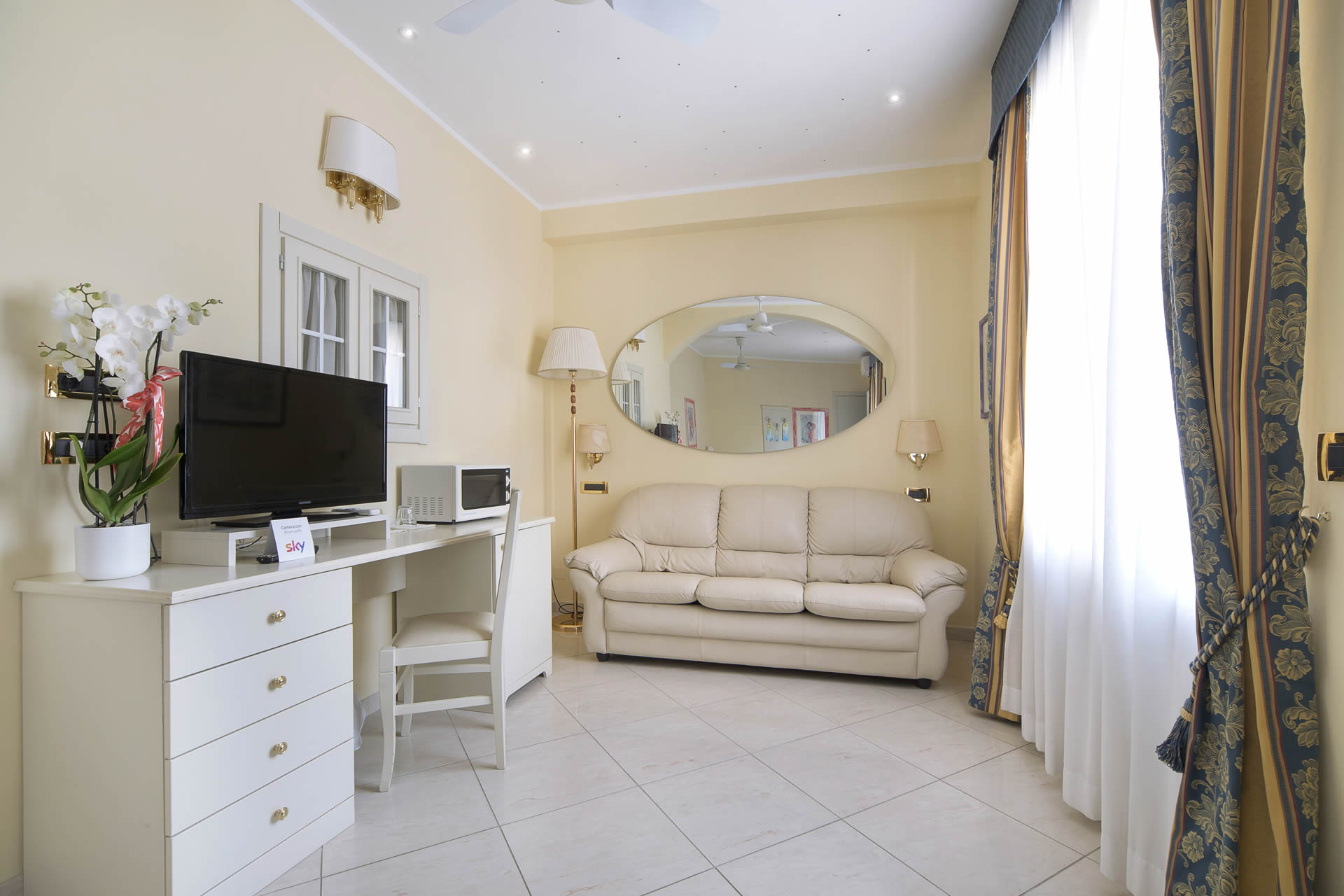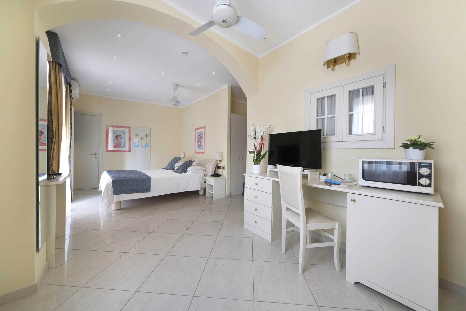 Monolocale senza cucina con balcone, ampia doccia idromassaggio, doppia tv led con decoder di SKY, letto matrimoniale con anche il divano con possibilità di diventare letto matrimoniale e possibilità di aggiungere la culla.