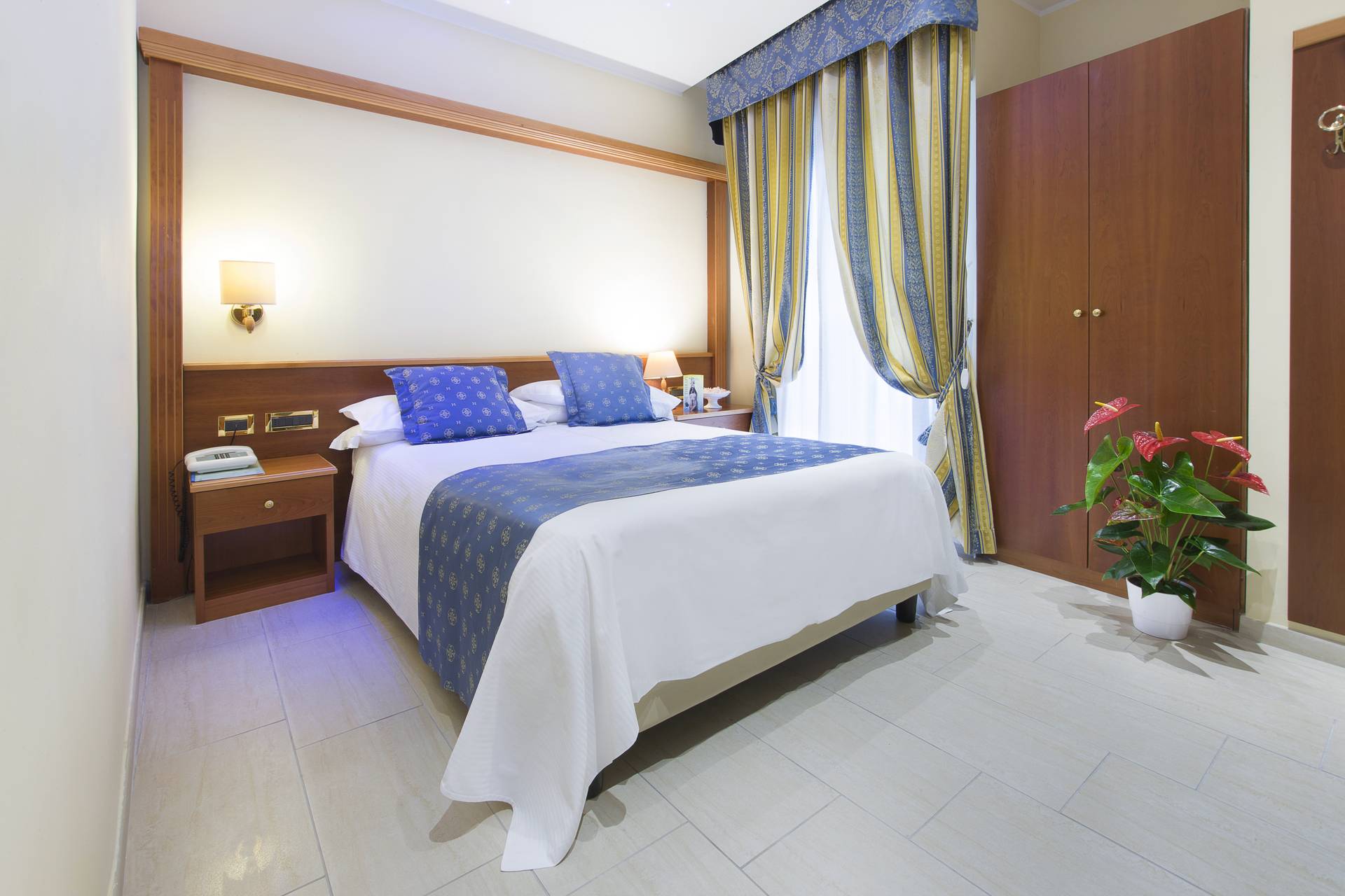 Servizi e comfort: aria condizionata caldo/freddo regolabile, termosifoni, ventilatore a soffitto, minifrigo, TV LCD/LED con TV-Sat e SKY, telefono, bagno privato con doccia, asciugacapelli, cassaforte, Wi-Fi e ADSL gratuiti.