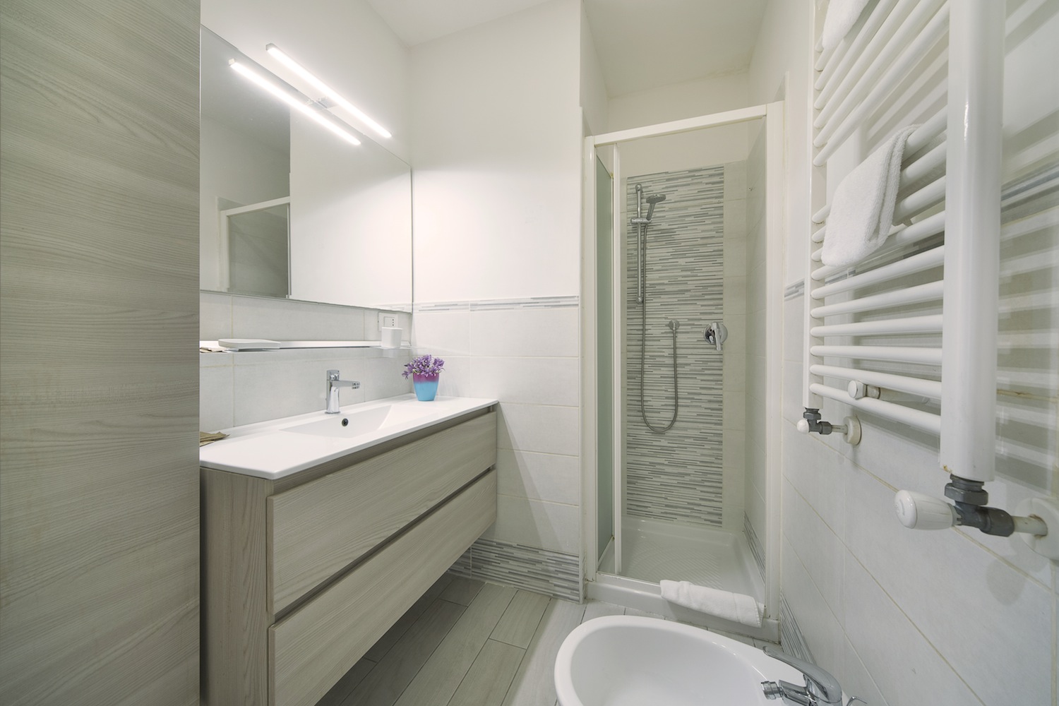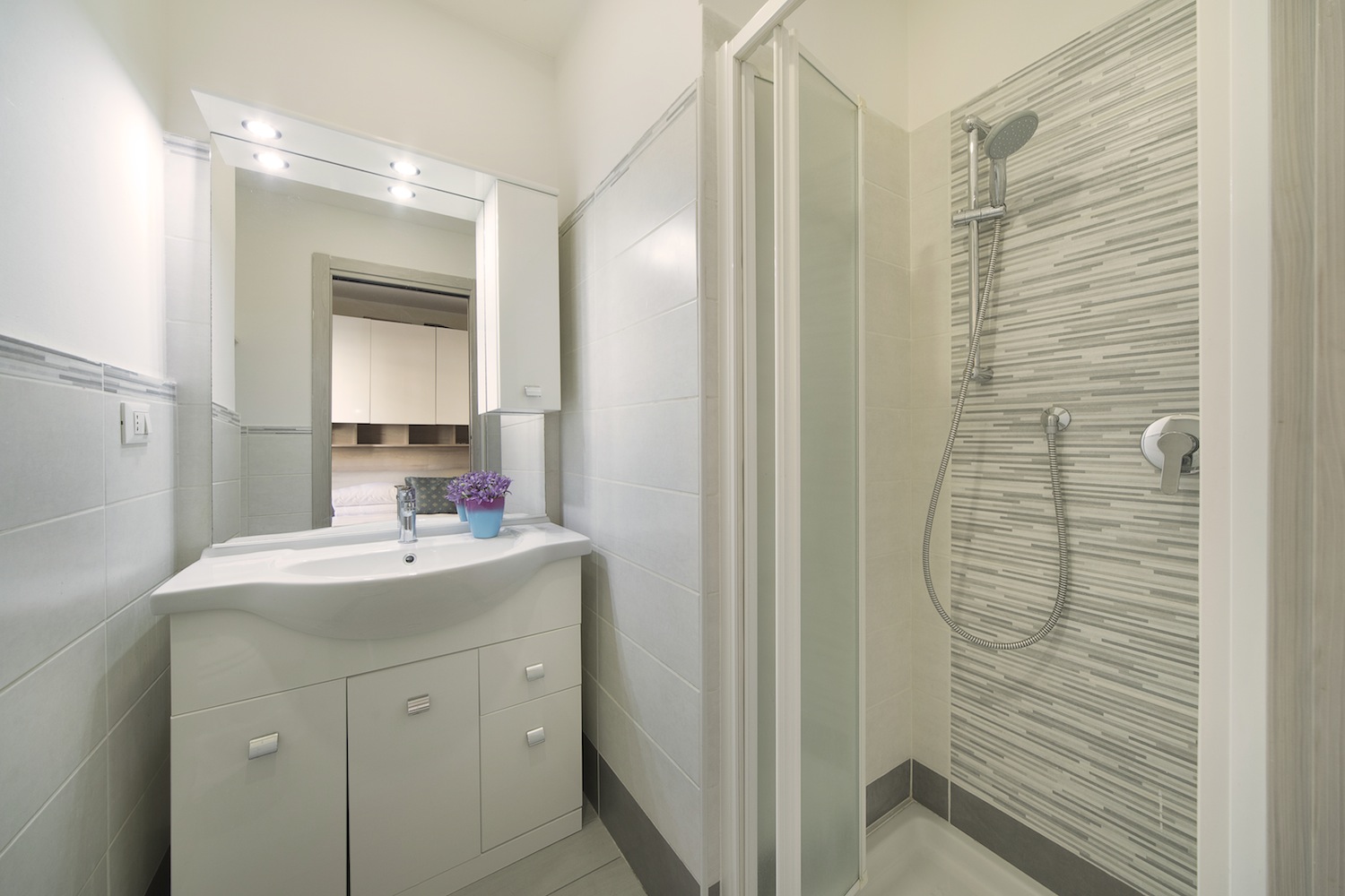 Appartamento composto da due camere matrimoniali, di dimensioni funzionali; dotato di doppi servizi con doccia.