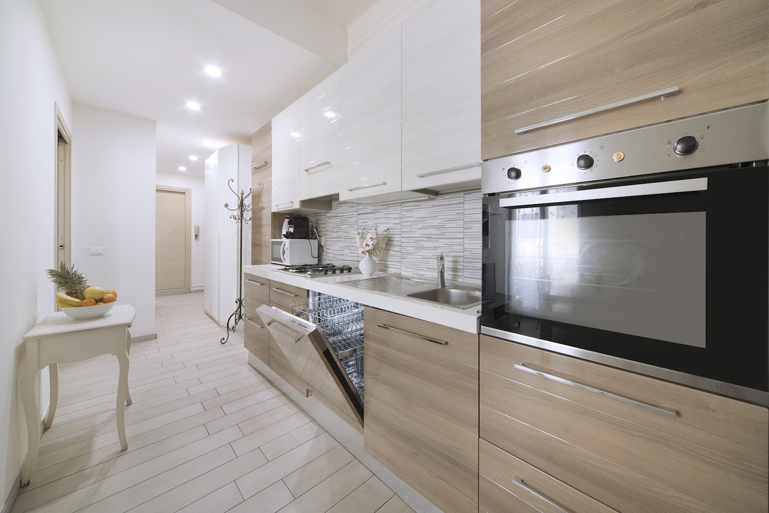 Cucina con soggiorno e balcone.